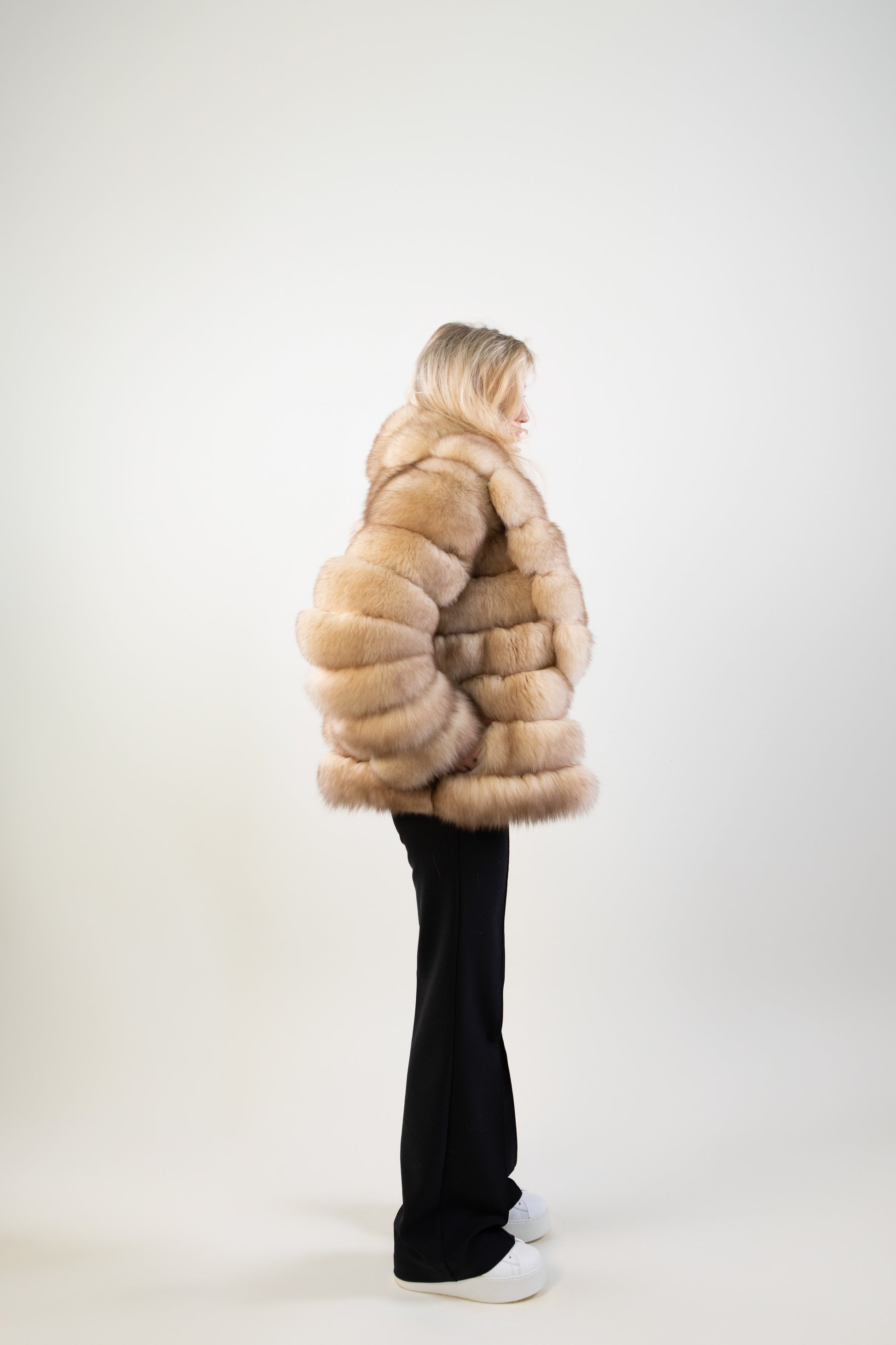 Our Royal Fox Fur Coat is a symbol of confidence and pure luxury. Crafted from fluffy fox fur with a distinctive volume that instantly attracts attention. Each piece is hand-crafted to create an iconic silhouette that elongates the figure and accentuates feminine curves.