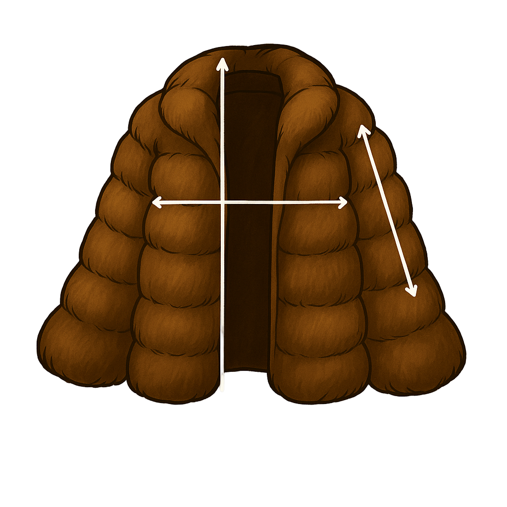 - ✍️ Zapiš hodnoty v centimetrech. My z nich spočítáme ideální střih, který ti sedne přesně, i když si pod kožich vezmeš něco teplejšího.